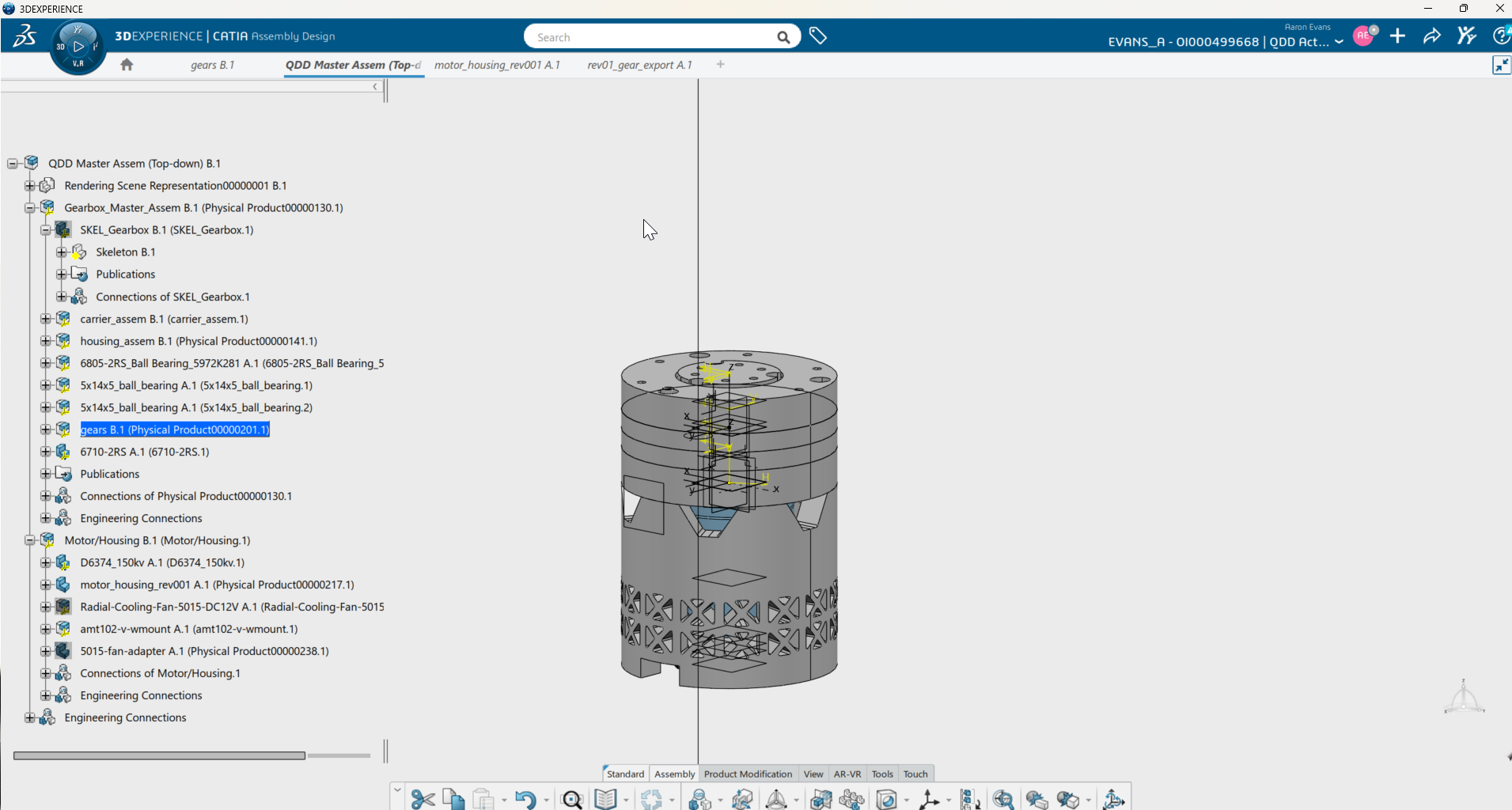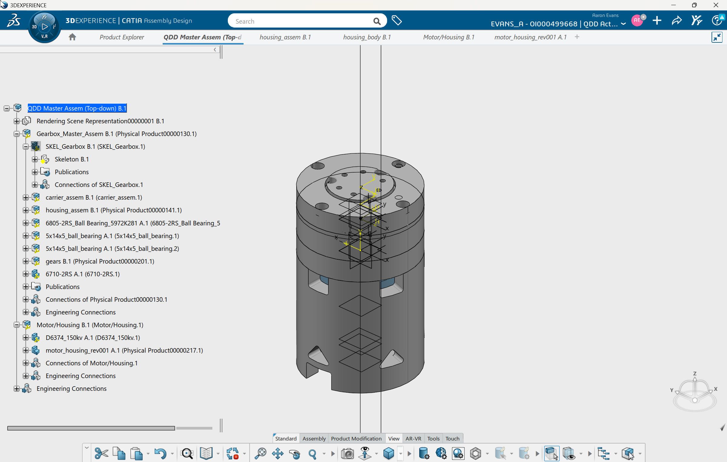 FDM prints aren't accurate enough for bearing fits out of the box. Bores print undersized by 0.1-0.4mm depending on diameter, so every bearing interface needs a calibrated offset in the CAD model. I keep each offset as a named parameter in the CATIA skeleton, which means the nominal bearing dimensions stay clean and I can tune each fit independently.