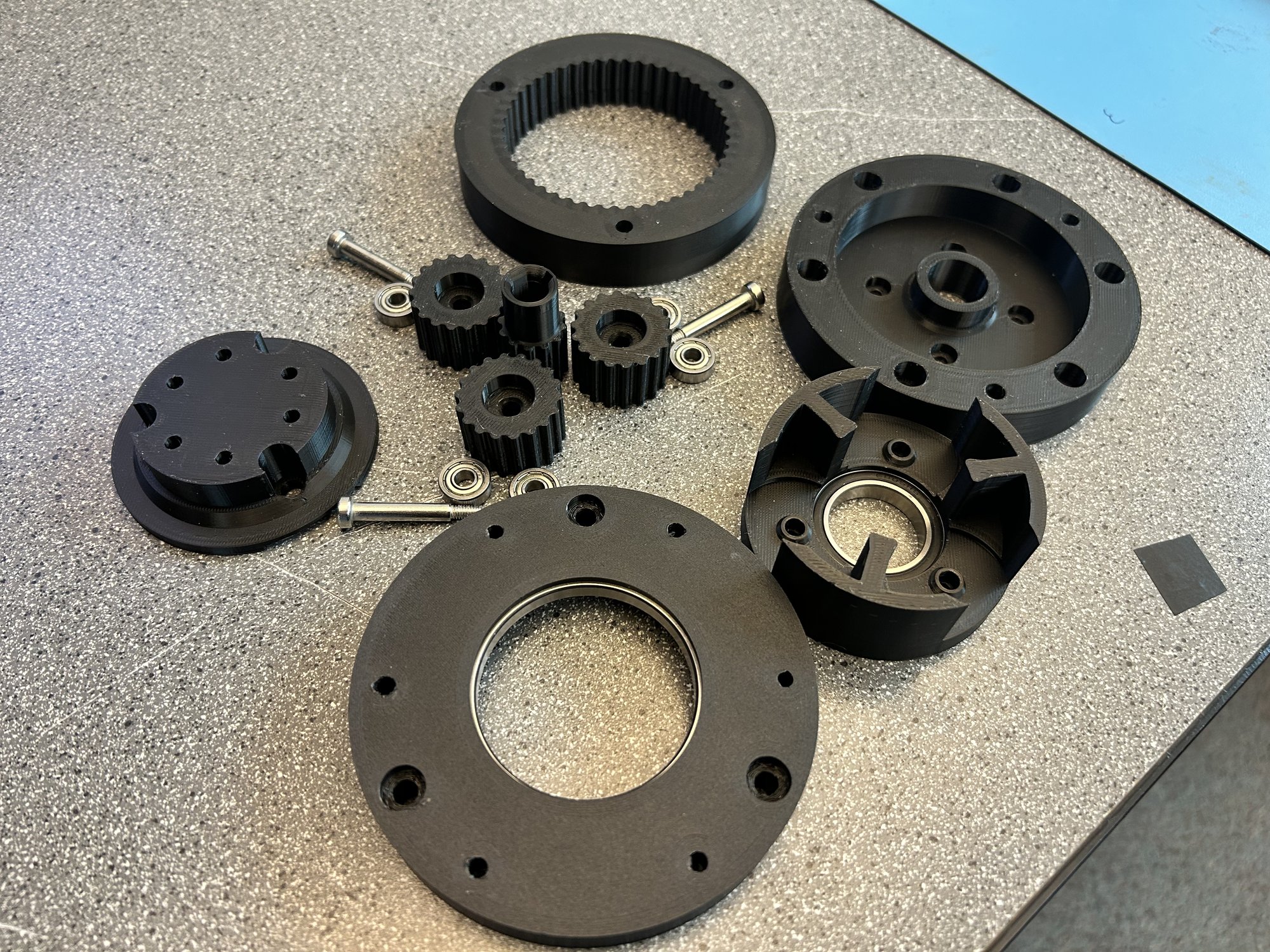 This started as a hackathon day in January 2026 with Russell Bilinski. We'd been looking at Caden Kraft's actuator work and wanted to learn more about how QDD gearboxes actually work by building one. Russell had a D6374 motor, an ODrive controller, bearings, and an encoder, so we started from there.
